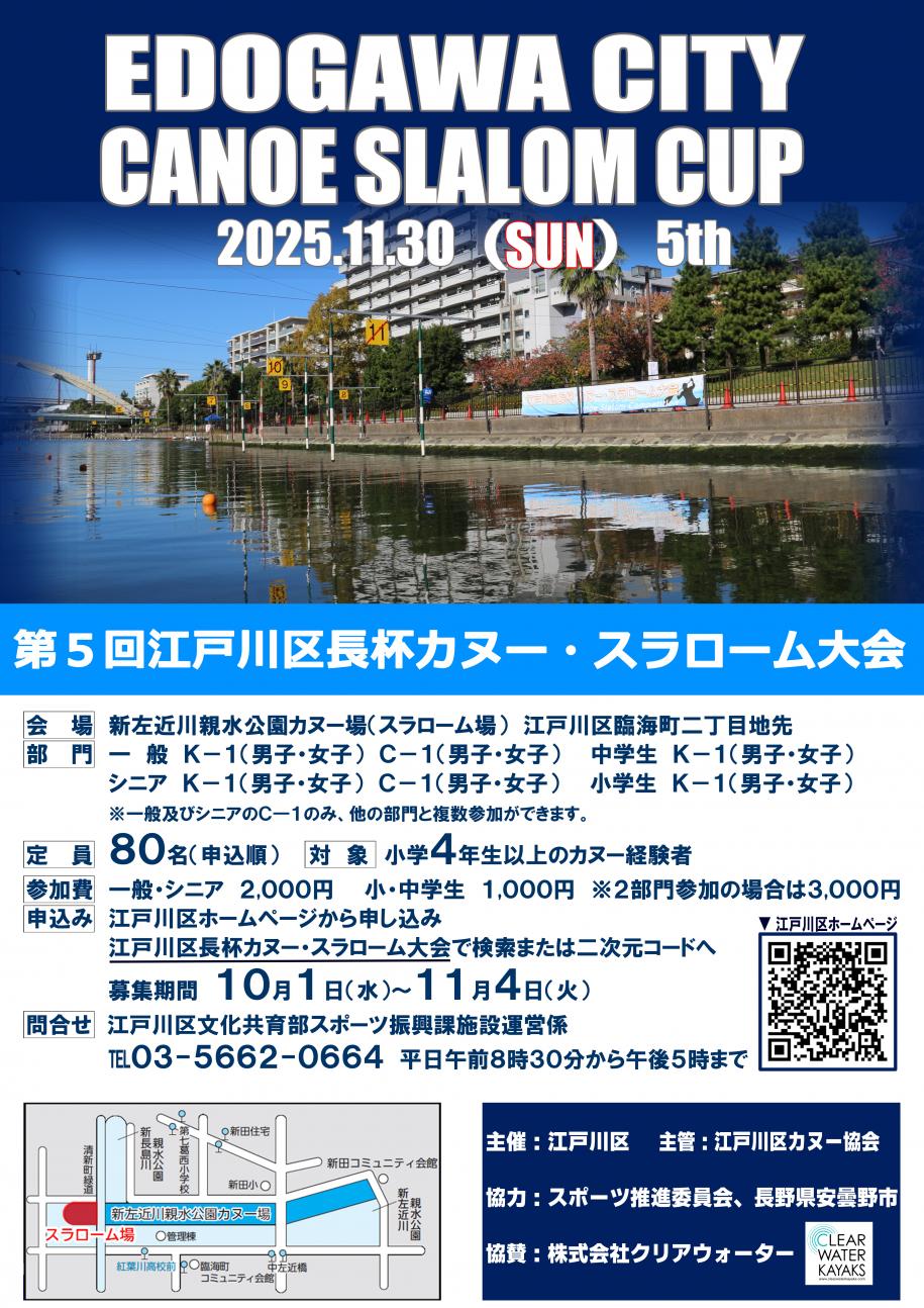 今日は、クリアウォーター協賛イベント第5回江戸川区長杯カヌー・スラローム大会をご紹介いたします。