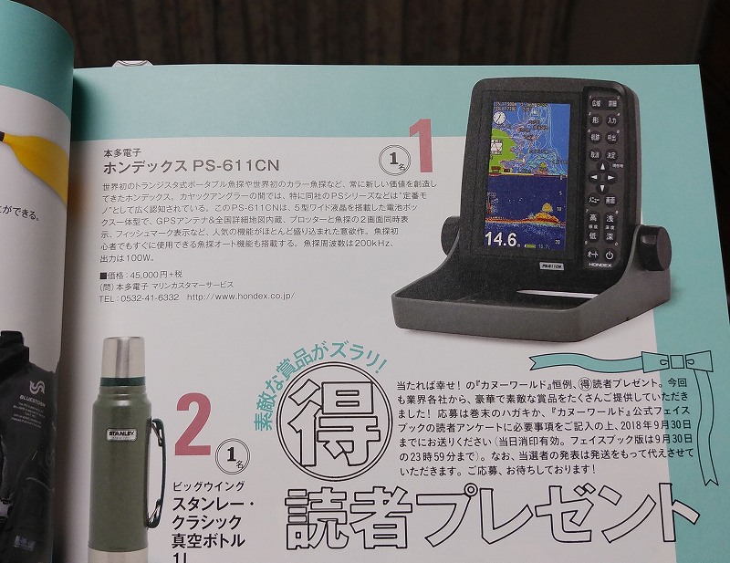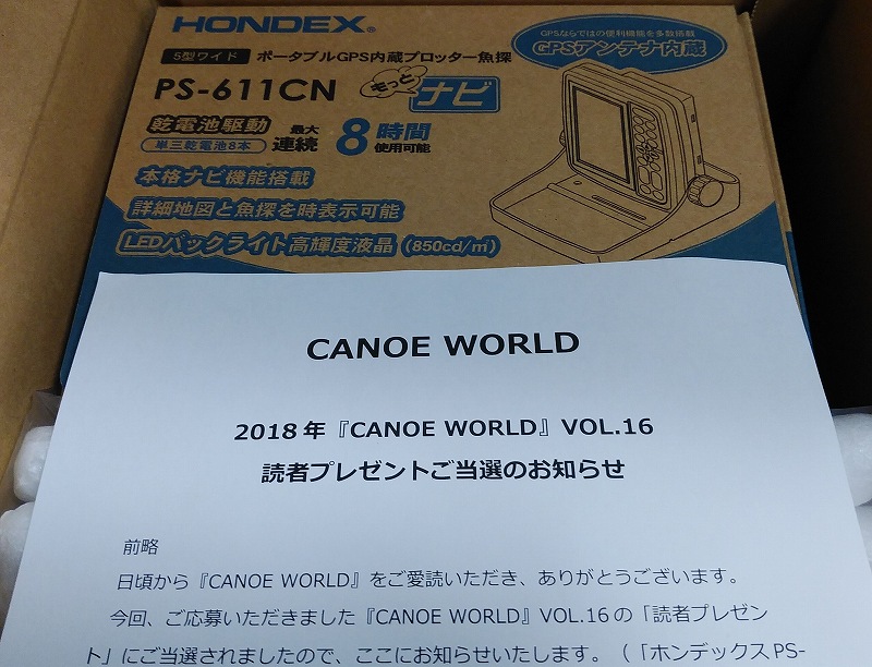 8月の試乗会に行った時にクリアウォーターカヤックスで買った『カヌーワールドVOL.16』で応募したおかげだな。